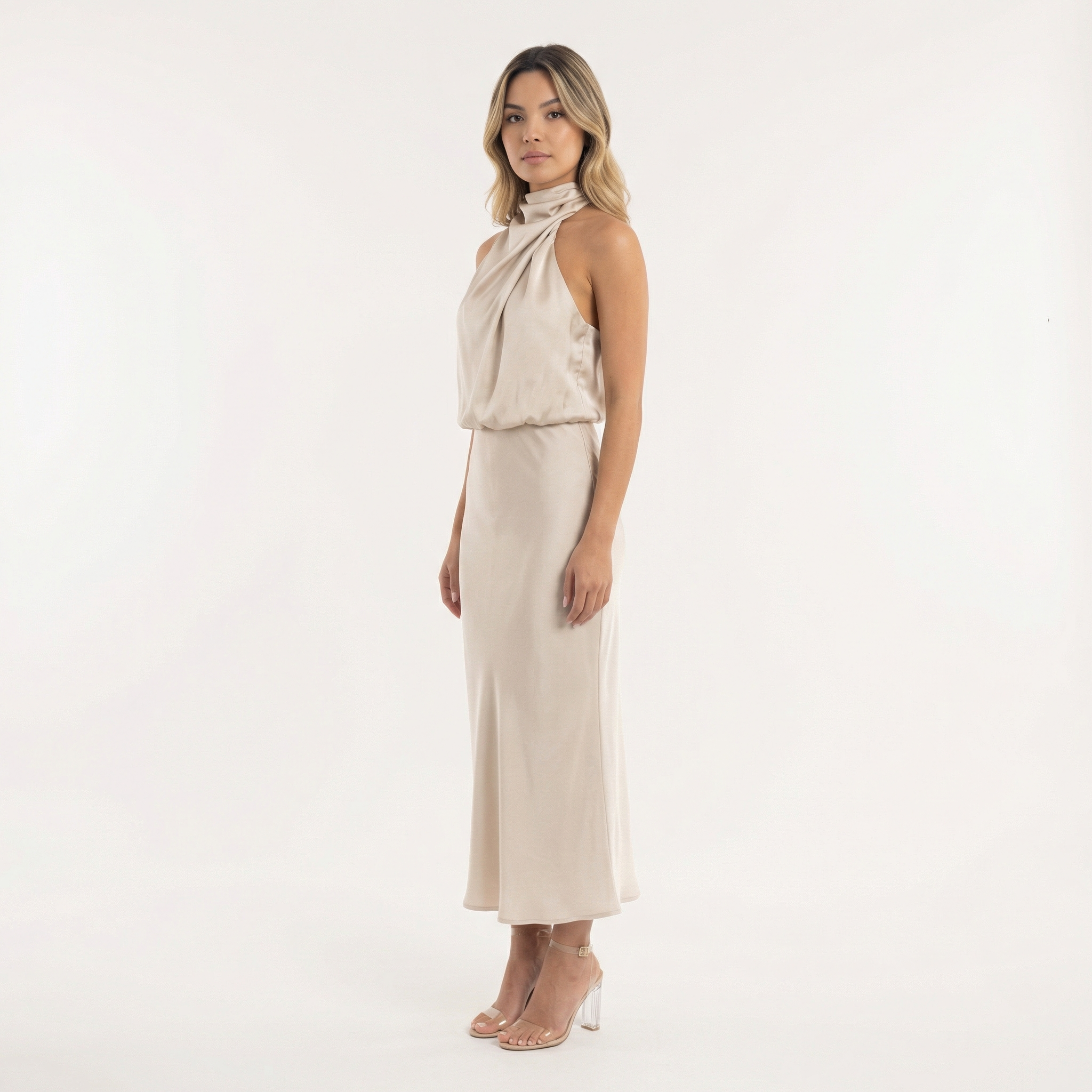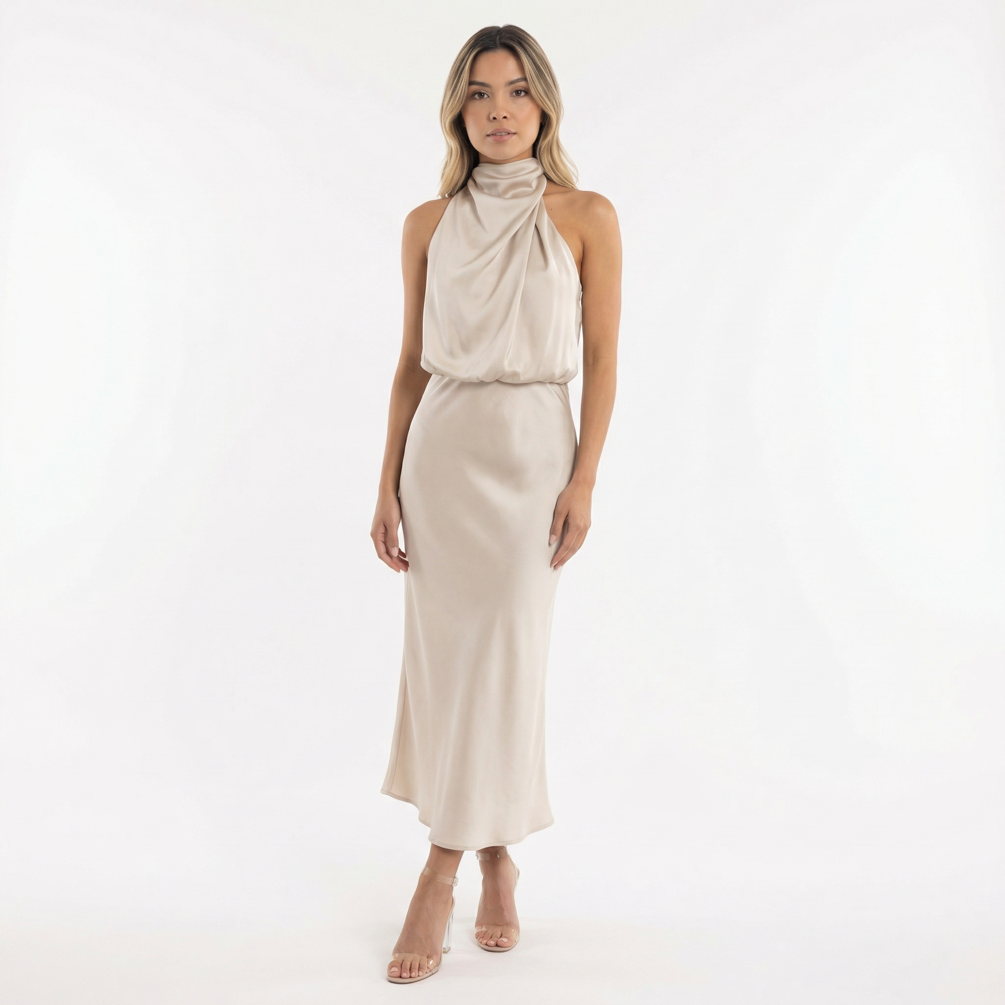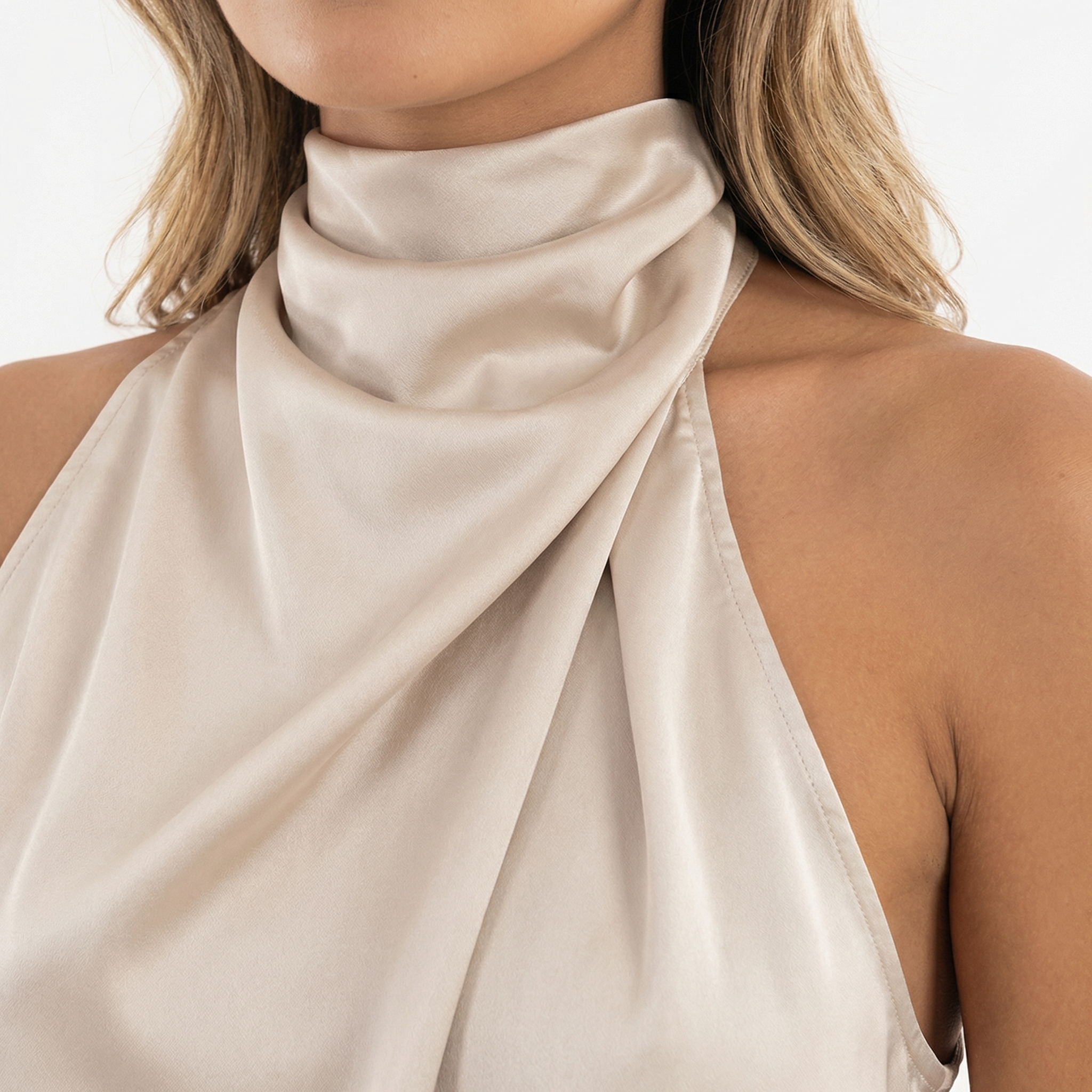 - Design avec un col halter pour une touche sophistiquée.
