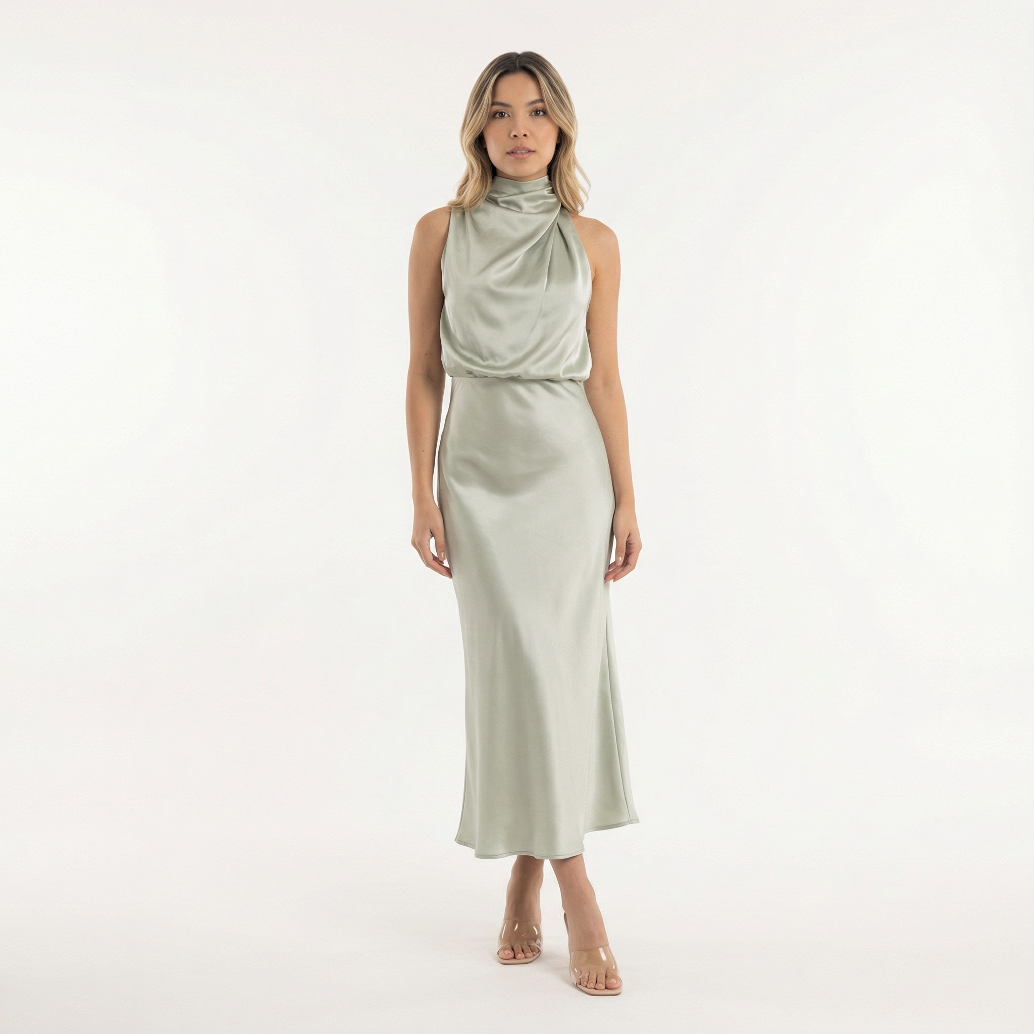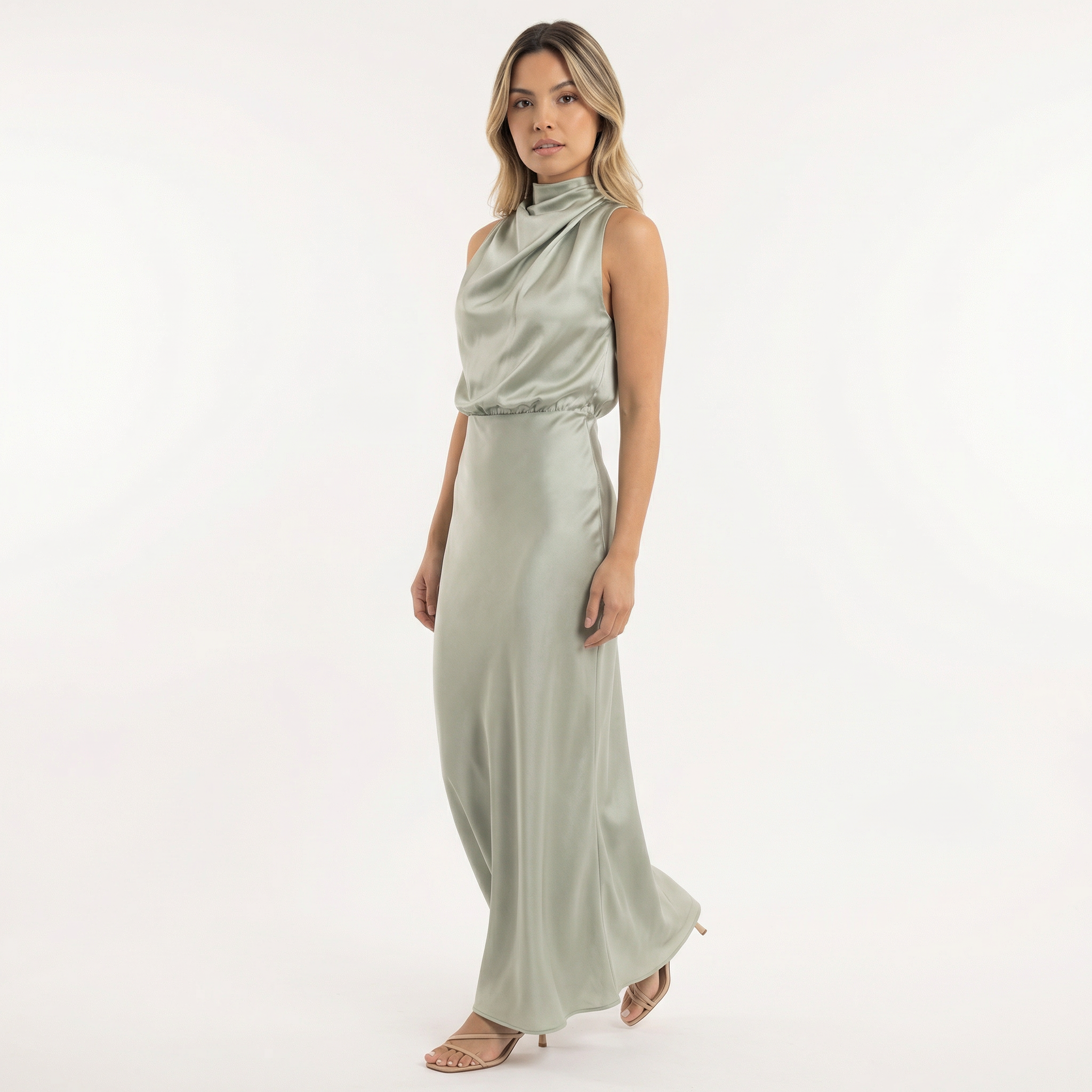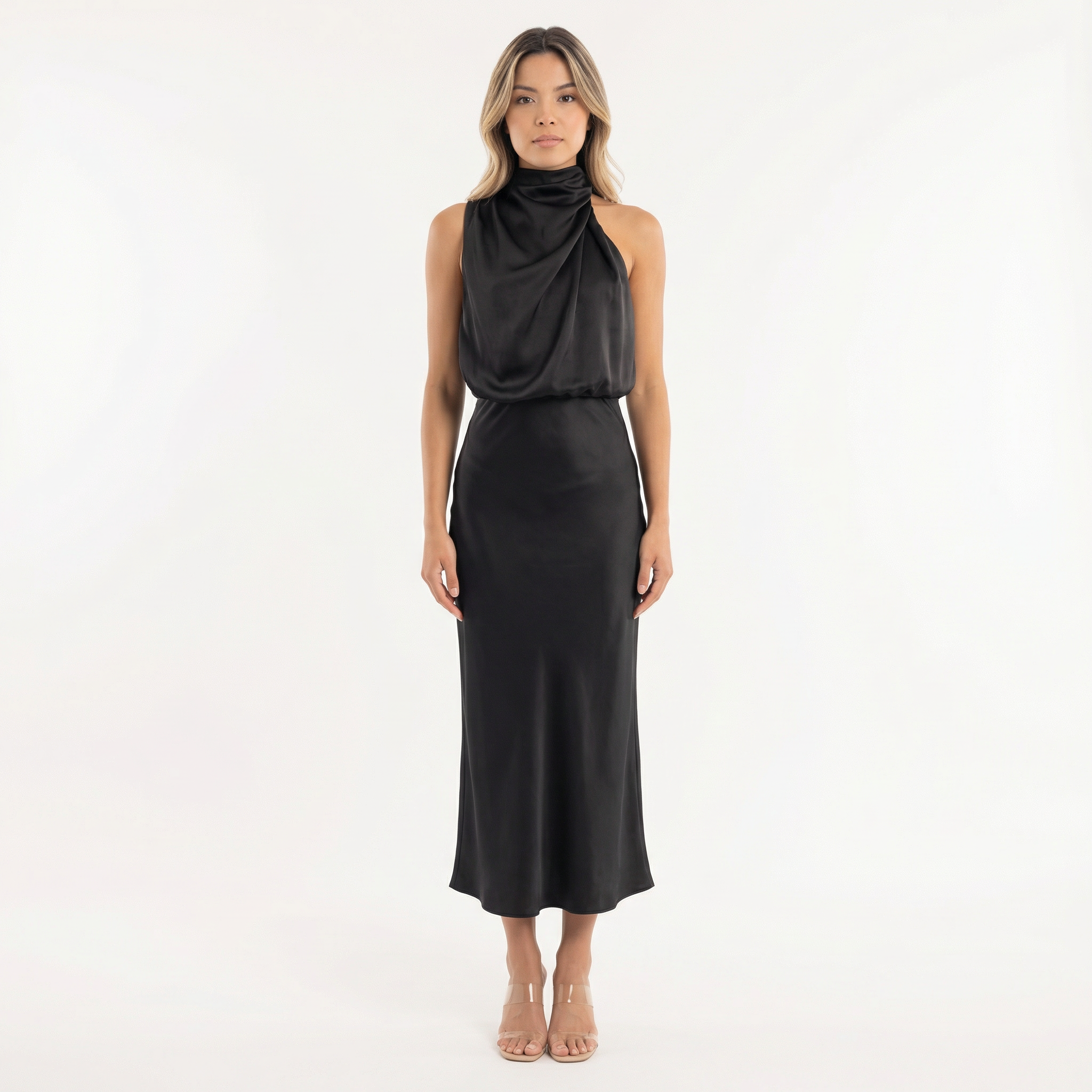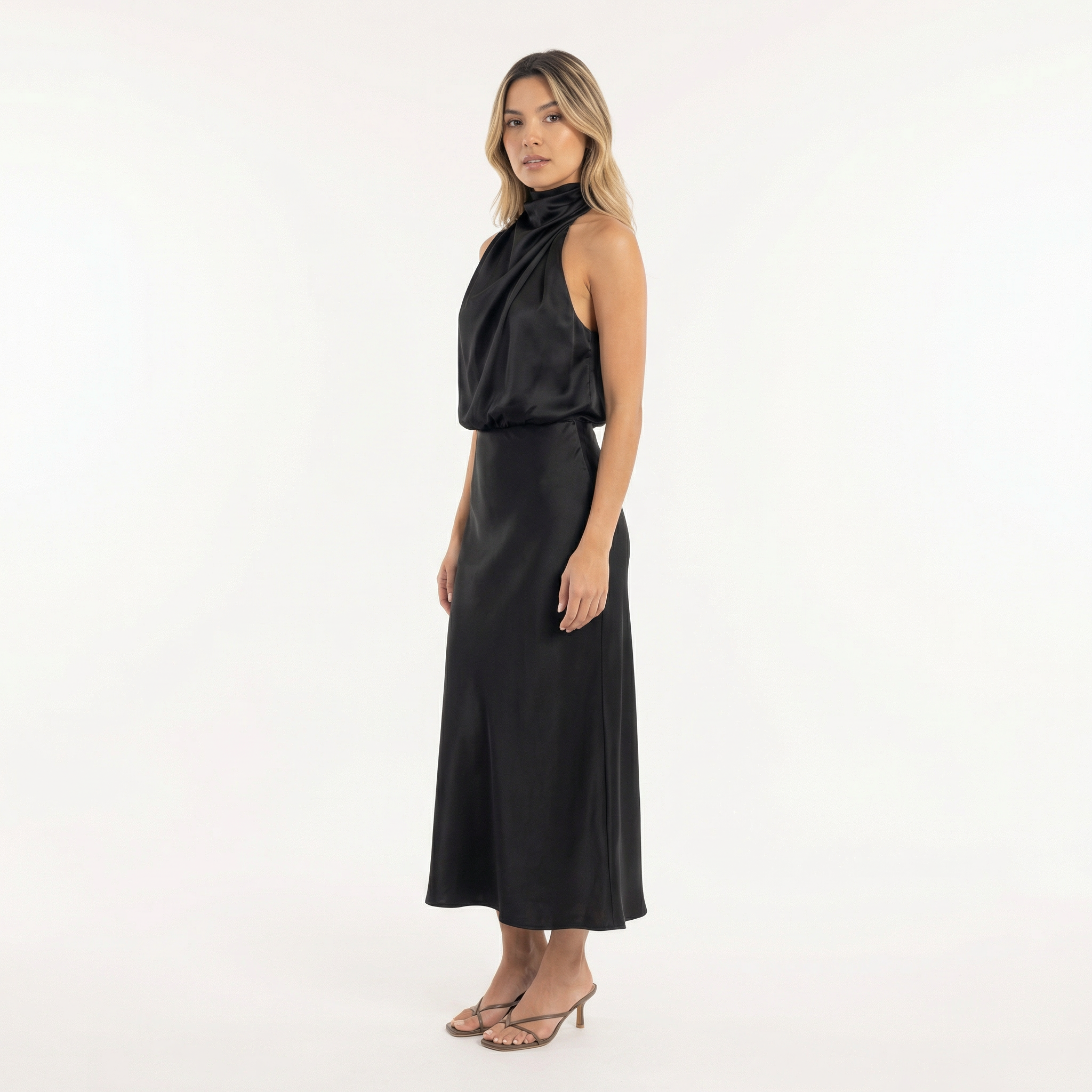 Robe longue satinée avec coupe fluide