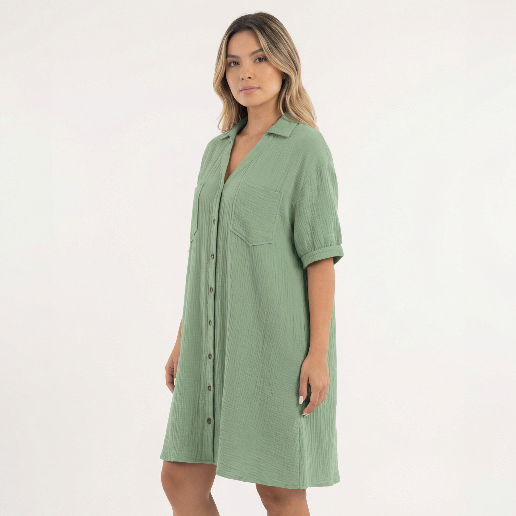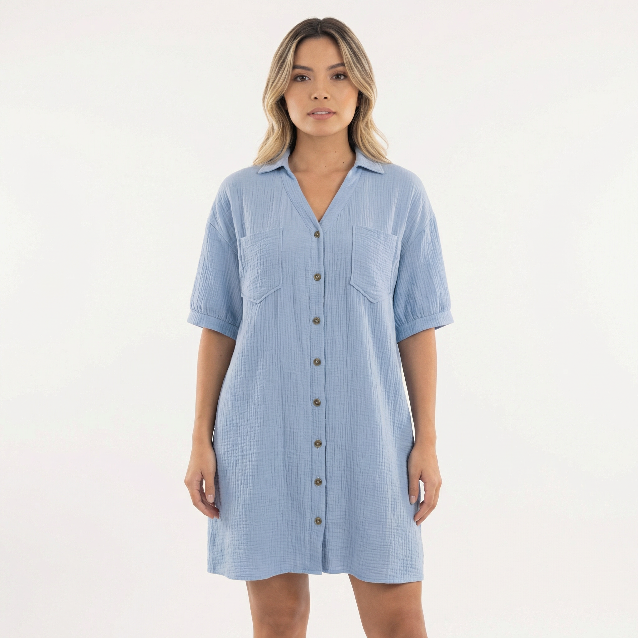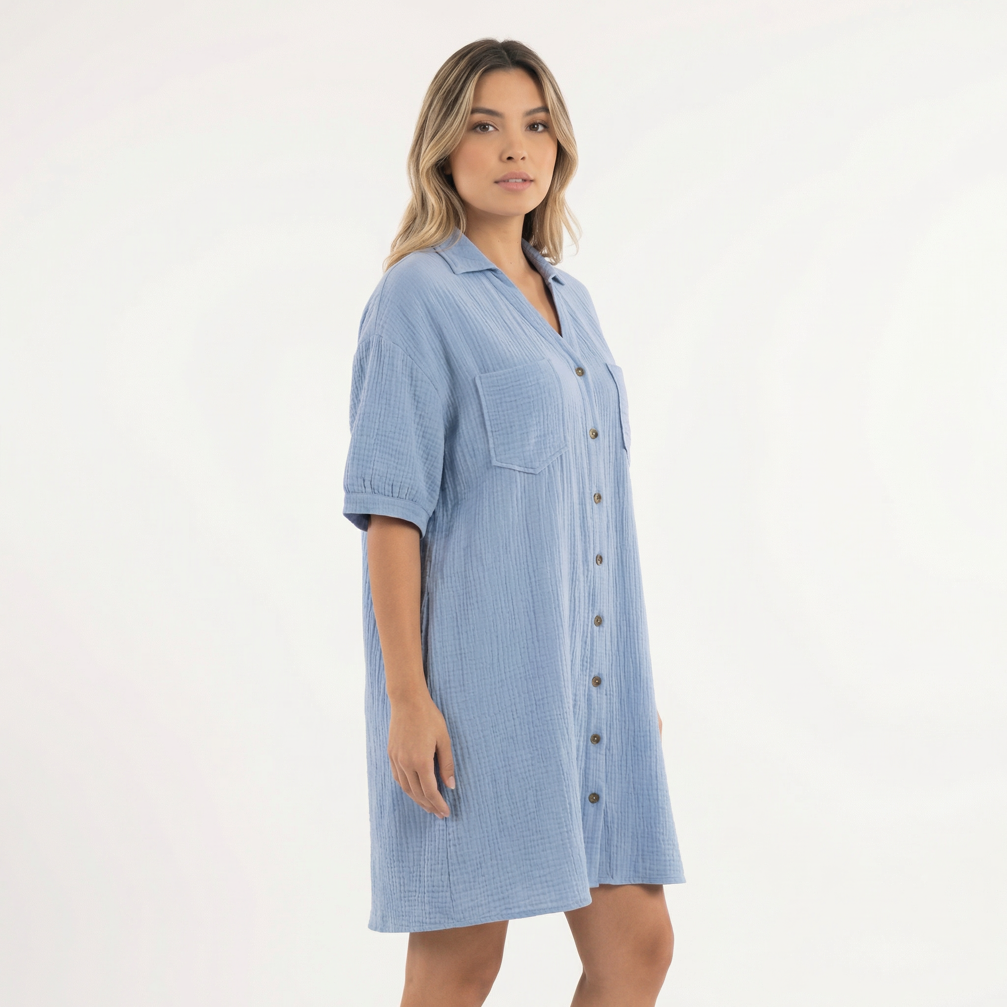 • Design type robe chemise avec fermeture à boutons et col classique.