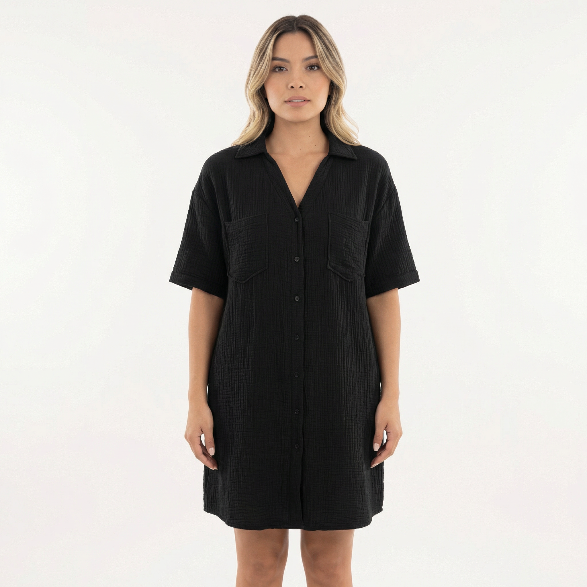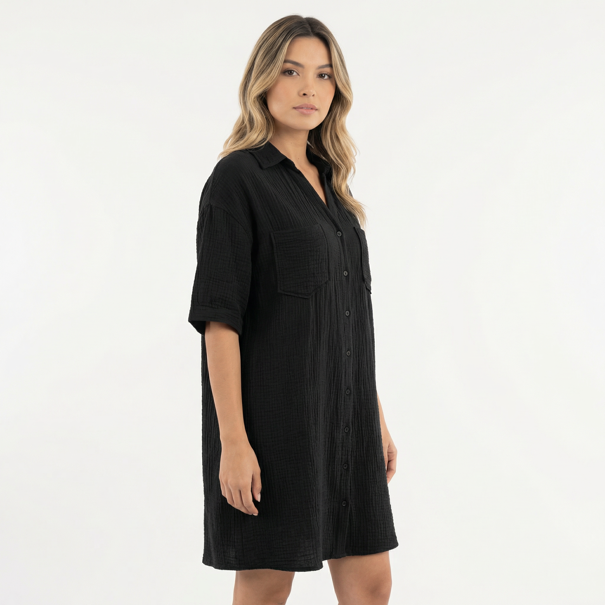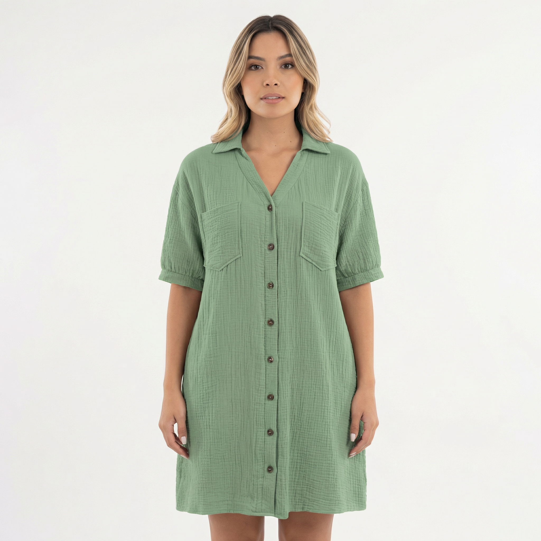 • Design type robe chemise avec fermeture à boutons et col classique.