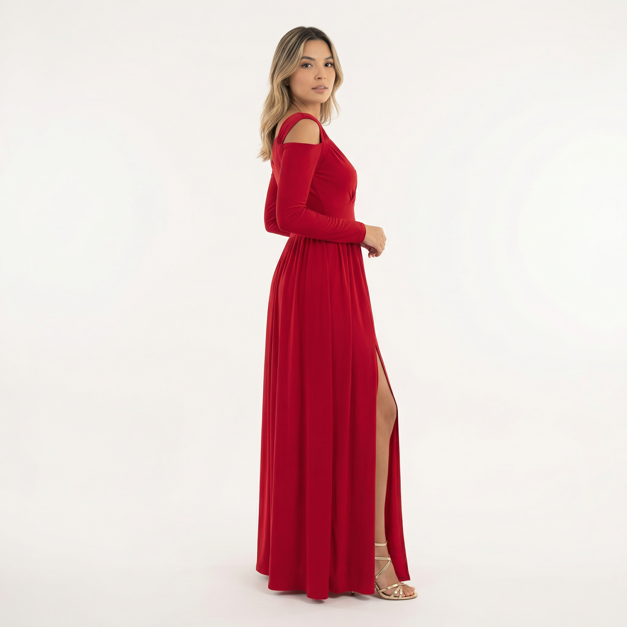 - Fente latérale qui allonge visuellement la silhouette et ajoute une touche moderne.