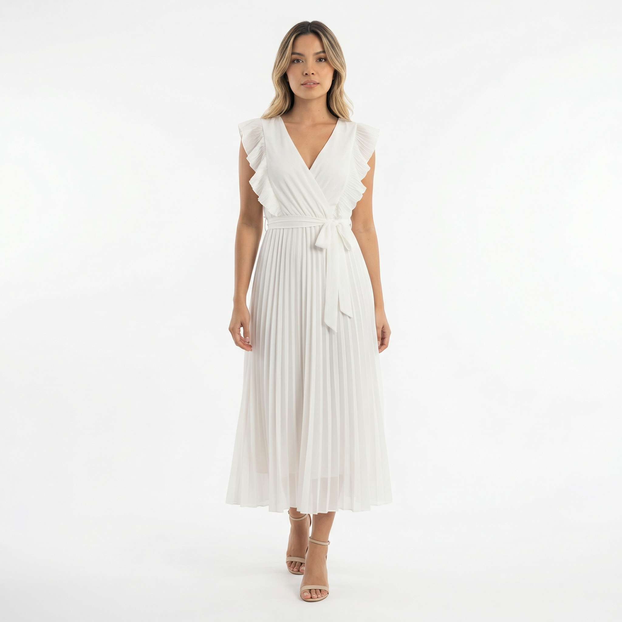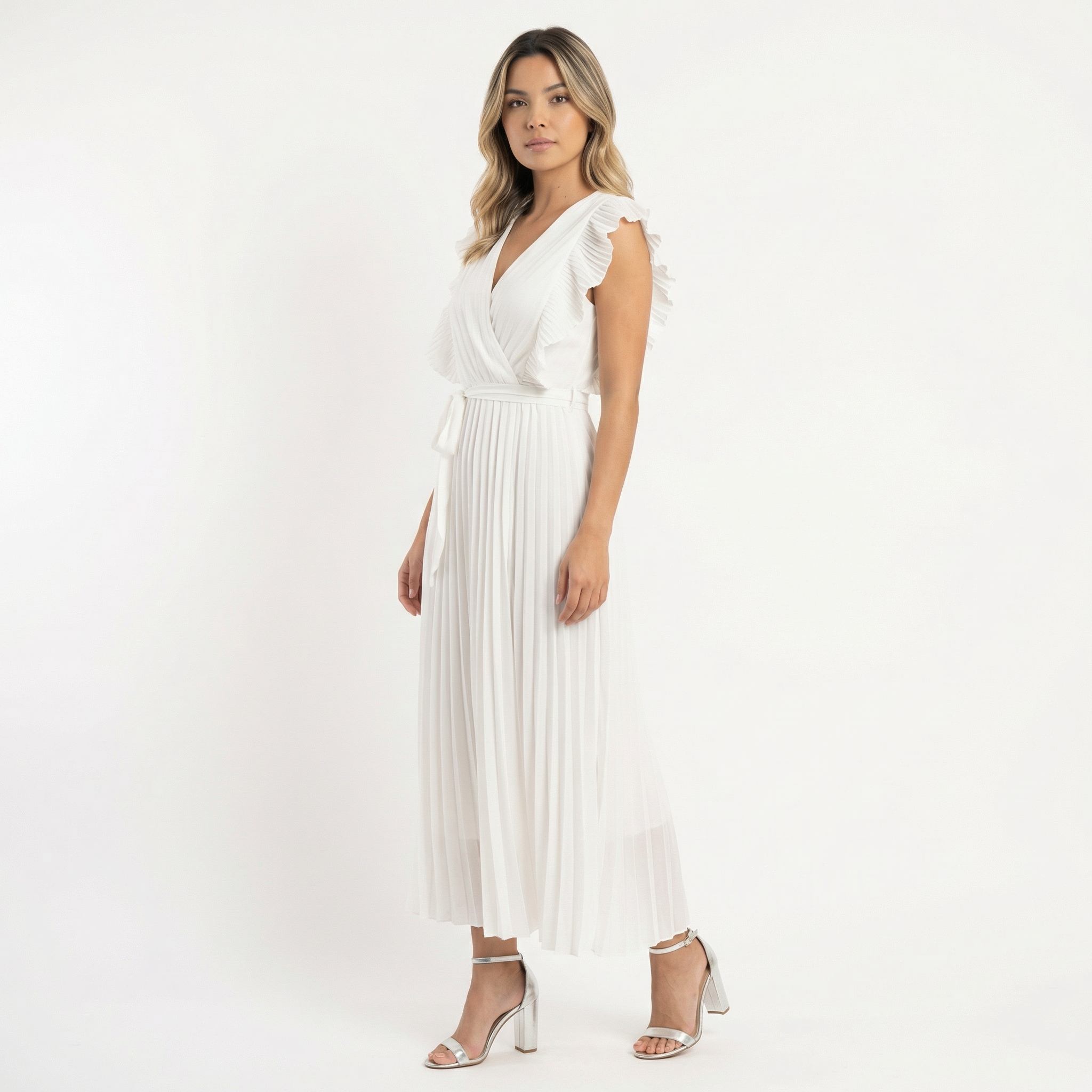 - Jupe plissée de longueur midi, parfaite comme robe élégante ou robe de graduation pour des occasions spéciales.
