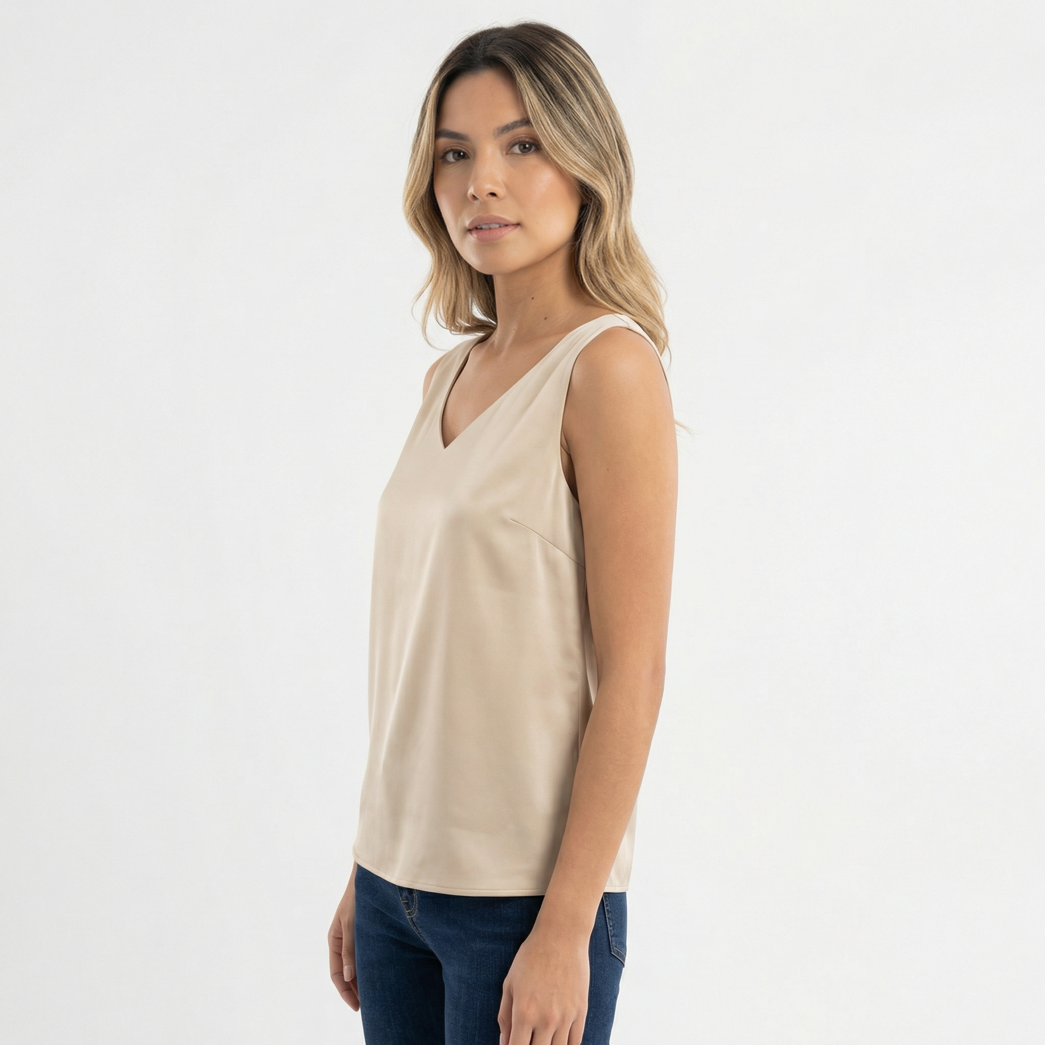 - Col en V flatteur qui met en valeur le décolleté avec une élégance discrète.