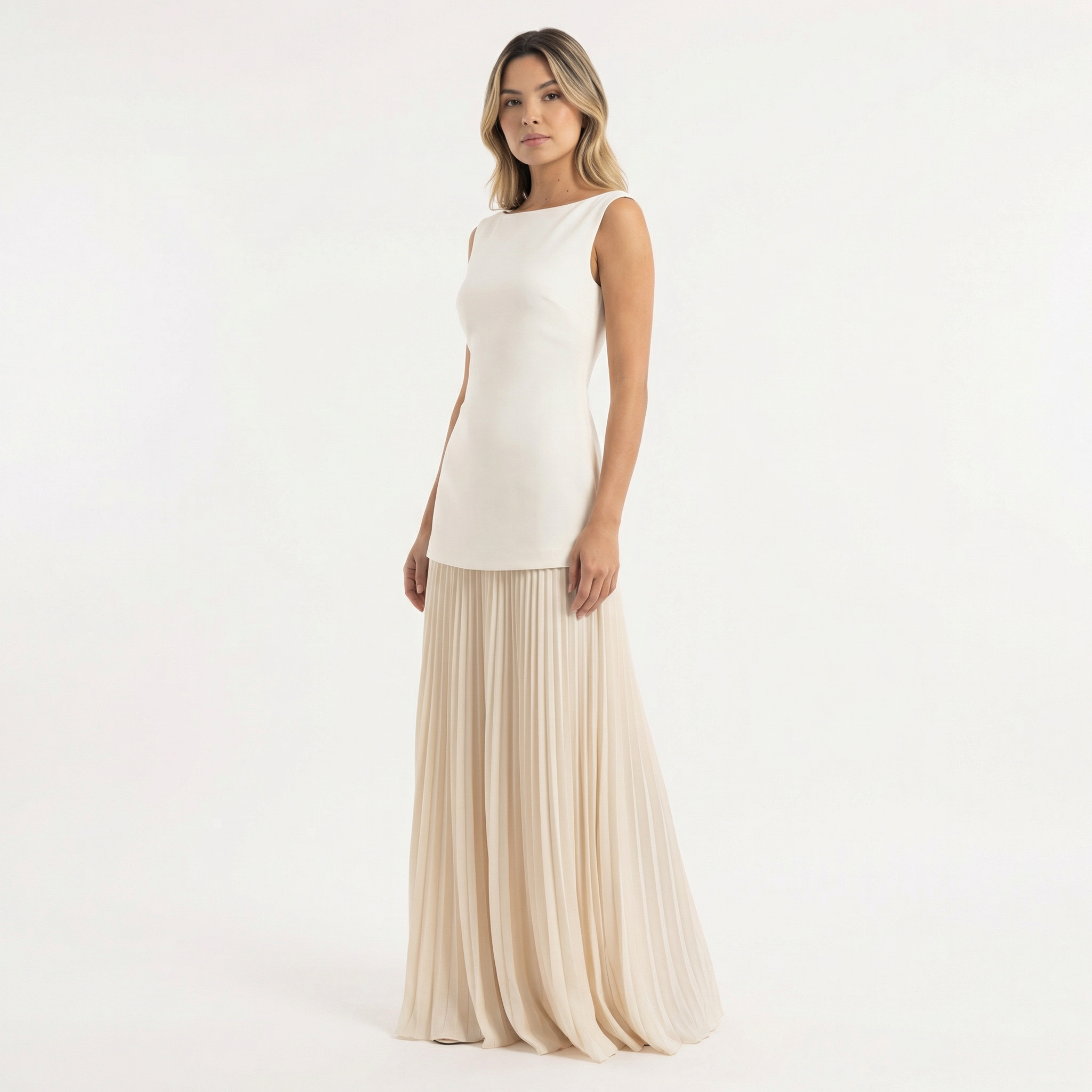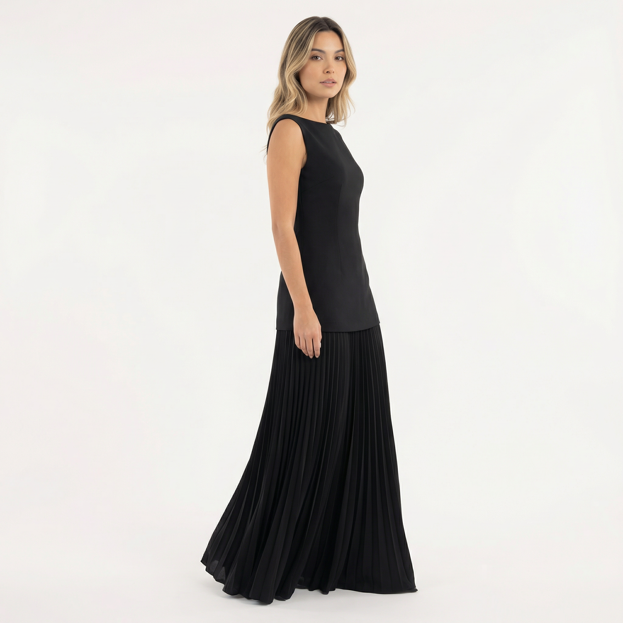 - Jupe longue plissée avec une chute fluide et uniforme.